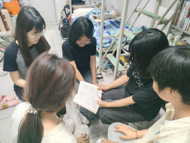在党的理论学习活动中,入党积极分子结合党史微视频播放,将党史故事与医学检验专业特色相结合,为学弟学妹们深入浅出地阐释党的创新理论。宿舍谈心谈话环节,成为连接同学们思想与生活的桥梁,学生党员将党的先进理论和典型案例融入日常,通过剖析生活中的问题帮助同学们更好地理解有关知识,营造温馨向上的生活氛围。在学习经验分享交流会上,学生党员们系统传授时间管理、笔记技巧等学习方法,推荐优质学习资源,营造互帮互学的良好氛围,并对同学们进行职业生涯规划指导,帮助大家明确职业方向。学生党员们带头组建志愿服务队,与入党积极分子和同学们先后开展了进社区健康知识宣传等志愿服务活动,积极参与“百万大学生进社区”、大学生“三下乡”志愿服务等社会实践,一位累计志愿服务65小时的入党积极分子分享道:“在服务他人中锤炼党性修养,让我深刻体会到了自己对社会的价值。”