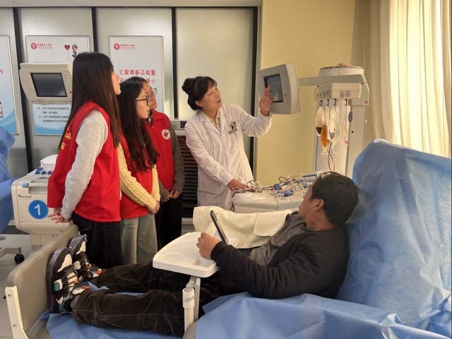 活动现场,支部党员与入党积极分子化身“流动宣传员”,在献血屋周边设立宣传站点,通过发放宣传彩页、现场讲解等方式向过往群众普及无偿献血知识。随后,支部志愿者与血站医务人员紧密协作,以专业素养和暖心服务助力献血活动有序开展:主动协助完成献血者信息核对、血压测量等前期准备工作,并围绕血液检测标准、献血后护理要点等市民关切问题提供精准解答,以通俗易懂的语言化解民众疑虑,以专业细致的服务缓解献血者紧张情绪,切实搭建起爱心传递的“红色桥梁”。志愿者们纷纷表示,此次主题党日活动让自己对无偿献血的公益价值与医者使命有了更为深刻的体悟,未来将以更高热情投身无偿献血事业和志愿服务活动,用实际行动诠释“一名党员一面旗”的责任担当。