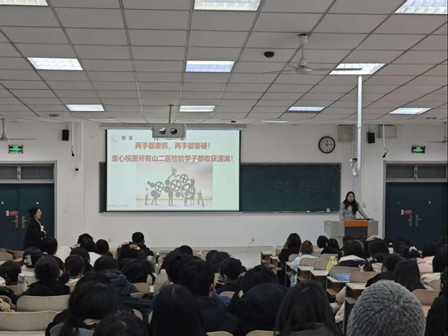 孙艳丽结合当前医疗卫生行业的发展趋势与人才需求,剖析了各方向的培养重点、核心能力要求以及相应的职业发展空间,为同学们进行了系统讲解,并对第三方医学中心等就业平台的运行情况进行了介绍。对于学生提出的疑问,孙院长进行了细致的解答,现场交流气氛活跃。辅导员也鼓励同学们,希望大家立足自身优势,关注学科前沿,将眼前的方向选择与未来的深造或就业目标紧密衔接,走好专业成长的每一步。